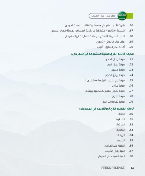 سابعا :قائمة الفرق الفنية المشاركة في المهرجان:
