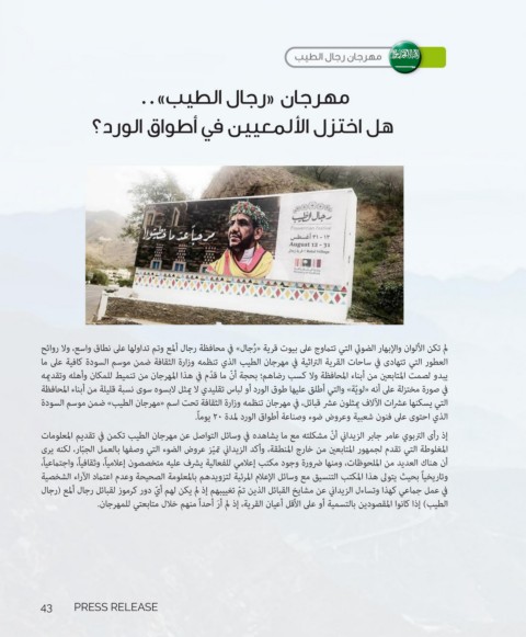 التي يسكنها عشرات الآلاف يمثلون عشر قبائل ،في مهرجان تنظمه وزارة الثقافة تحت اسم «مهرجان الطيب» ضمن موسم السودة