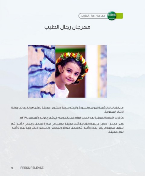 ‫مـن الفعاليـات الرئيسـة لموسـم السـودة‪ ،‬وتابعتـه سـبعة وعشـرين صحيفـة باهتمـام بالـغ بجانـب وكالـة‬