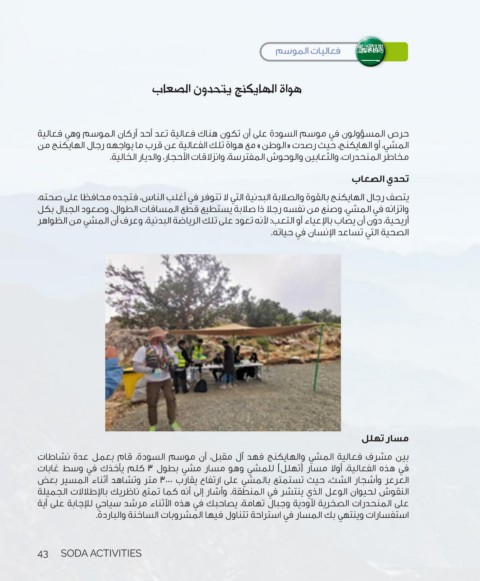 بين مشرف فعالية المشي والهايكنج فهد آل مقبل ،أن موسم السودة ،قام بعمل عدة نشاطات