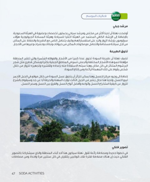 تضيف نهلة أن طبيعة السودة تحوي عددا كبيرا من الأشجار والفواكه ال ُمثمرة والتي تعتبر المنطقة