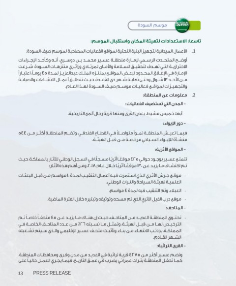 ‫المملكـة‪ ،‬بجانـب الانتهـاء مـن بنـاء وتأثيـث متحـف عسـير الإقليمـي والـذي سـيتم تشـغيله‬