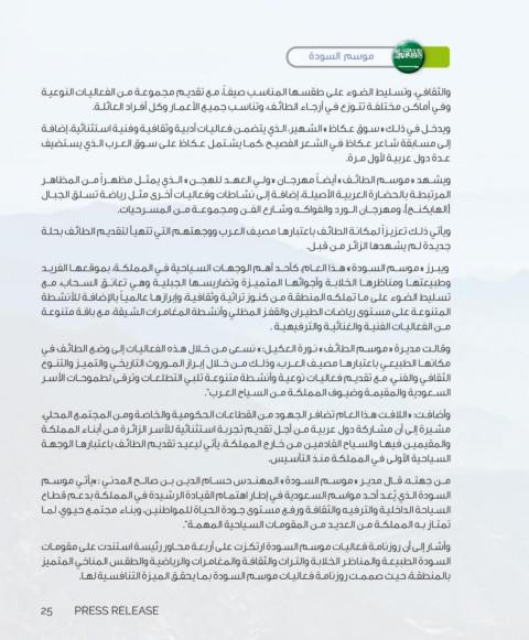 ويأتـي ذلـك تعزيـزاً لمكانـة الطائـف باعتبارهـا مصيـف العـرب ووجهتهـم التـي تتهيـأ لتقديـم الطائـف بحلـة