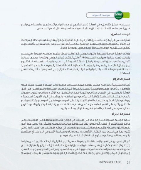 ‫وإدراجـه ضمـن مبـادرة «مواسـم السـعودية ‪ »2019‬التـي أطلقـت فبرايـر الماضـي‪ ،‬وتضـم ‪ 11‬موسـما سـياحيا‬