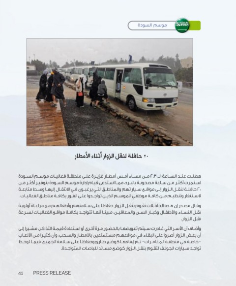 ‫‪ 20‬حافلة لنقل الزوار أثناء الأمطار‬