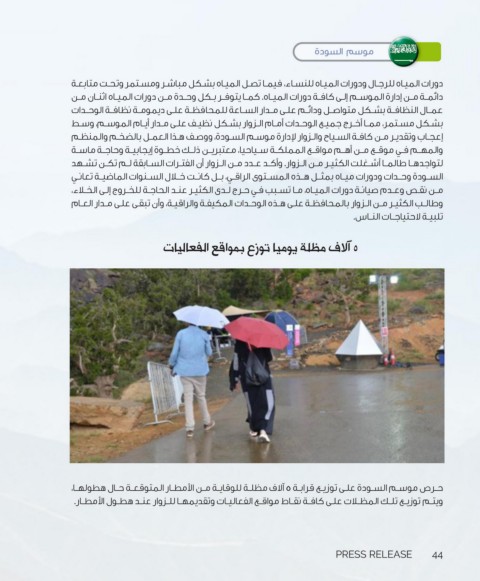 ‫إعجـاب وتقديـر مـن كافـة السـياح والـزوار لإدارة موسـم السـودة‪ ،‬ووصـف هـذا العمـل بالضخـم والمنظـم‬