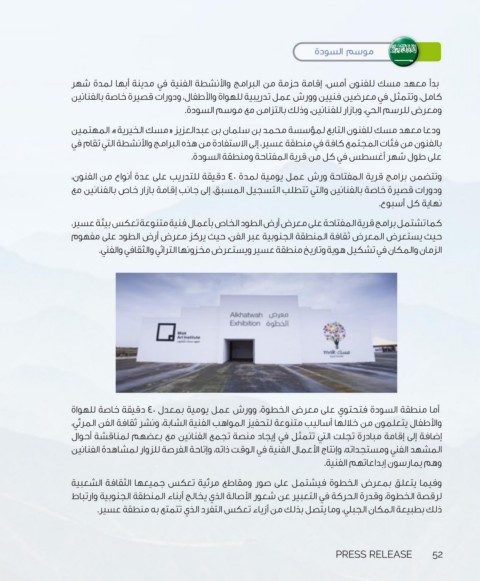 أما منطقة السودة فتحتوي على معرض الخطوة ،وورش عمل يومية بمعدل 40دقيقة خاصة للهواة