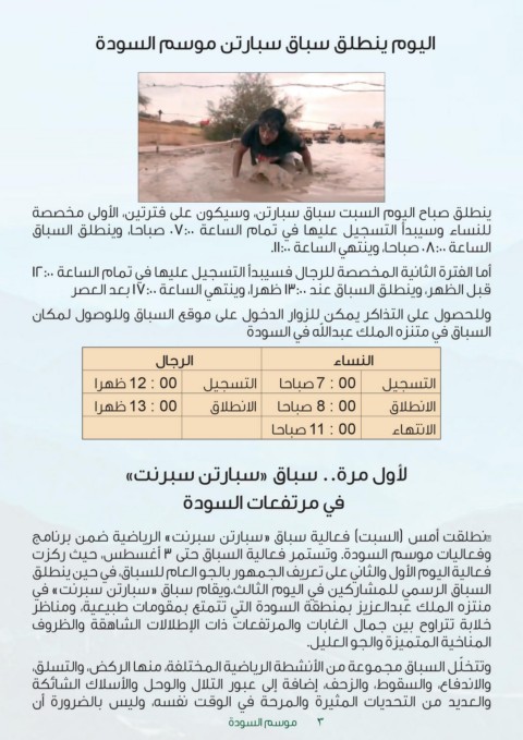 ‫وفعاليات موسم السودة‪ .‬وتستمر فعالية السباق حتى ‪ 3‬أغسطس‪ ،‬حيث ركزت‬