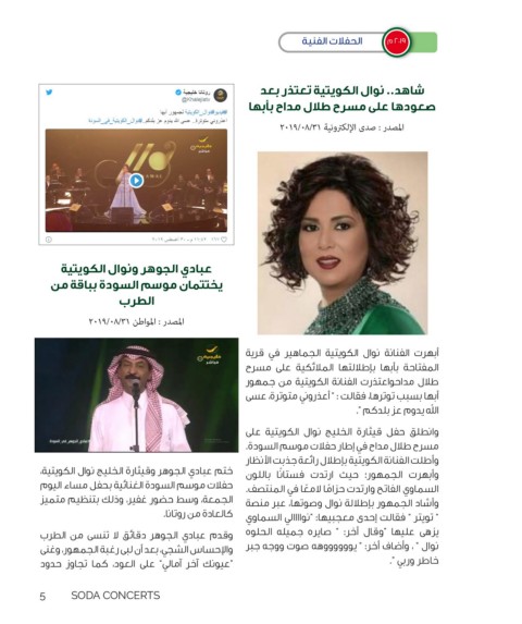 وقدم عبادي الجوهر دقائق لا تنسى من الطرب ” تويتر ” فقالت إحدى معجبيها“ :نواااالي السماوي