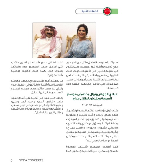 ‫التــي تفاعــل معهــا الجمهــور وردد كلماتهــا‬             ‫الــذي تواجــد بكثافــة‪ .‬نــوال حرصــت علــى التنــوع‬
