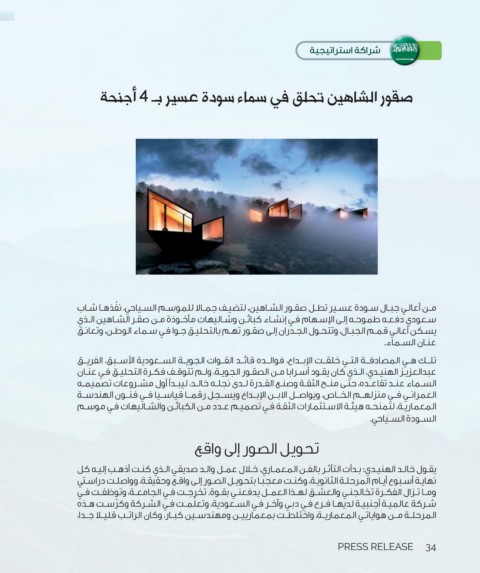 ‫سـعودي دفعـه طموحـه إلـى الإسـهام فـي إنشـاء كبائـن وشـاليهات مأخـوذة مـن صقـر الشـاهين الـذي‬