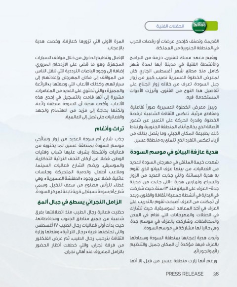 ‫موسم السودة بمنطقة عسير‪ ،‬لما يحتويه من‬                ‫أزياء تعكس التفرد الذي تتمتع به منطقة عسير‪.‬‬