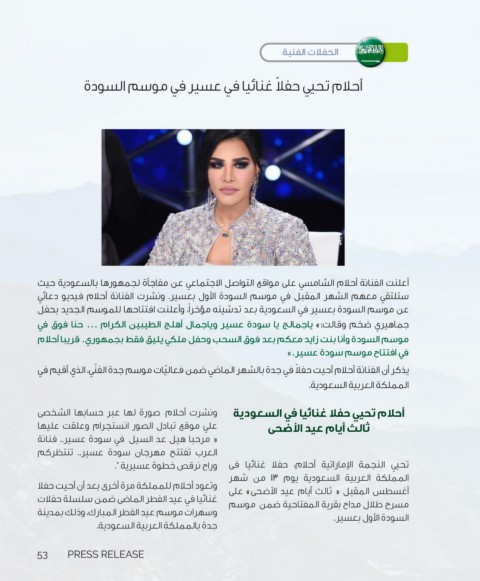 ‫العرب تفتتح مهرجان سودة عسير‪ ..‬تنتظركم‬           ‫تحيي النجمة الإماراتية أحلام‪ ،‬حفلا غنائيا فى‬