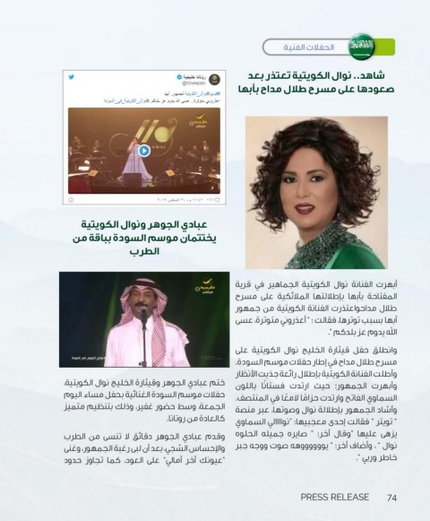 حفلات موسم السودة الغنائية بحفل مساء اليوم مسرح طلال مداح في إطار حفلات موسم السودة.