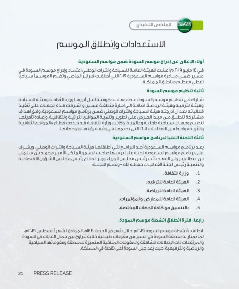 أولا :الإعلان عن إدراج موسم السودة ضمن مواسم السعودية