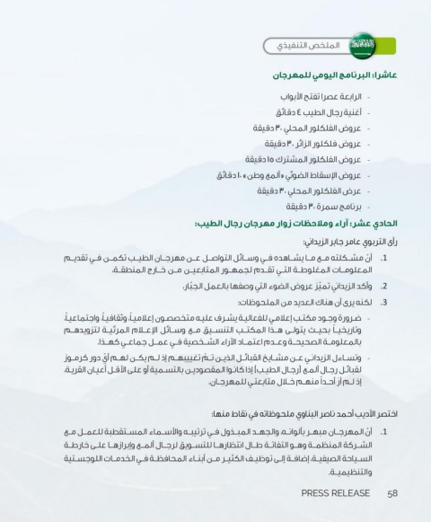 الحادي عشر :آراء وملاحظات زوار مهرجان رجال الطيب: