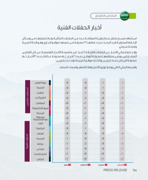 وقـد بلـغ اجمالـي الأخبـار عـن الحفـات الفنيـة ٢٥خبـرا ،غيـر متضمنـة الأخبـار التفصيليـة عـن كل الفنانيـن