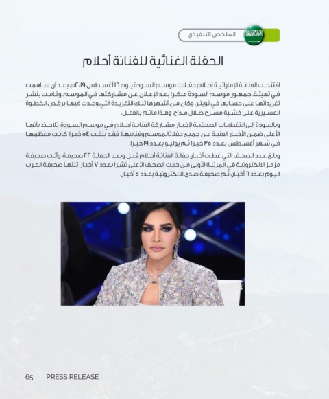 ‫وبلـغ عـدد الصحـف التـي غطـت أخبـار حفلـة الفنانـة أحـام قبـل وبعـد الحفلـة ‪ ٢٢‬صحيفـة‪ ،‬وأتـت صحيفـة‬