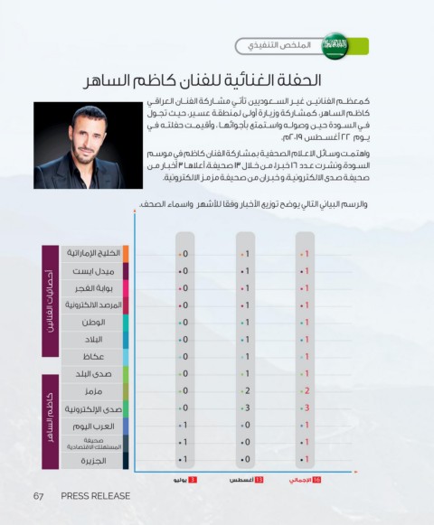 واهتمـت وسـائل الاعـام الصحفيـة بمشـاركة الفنان كاظم في موسـم