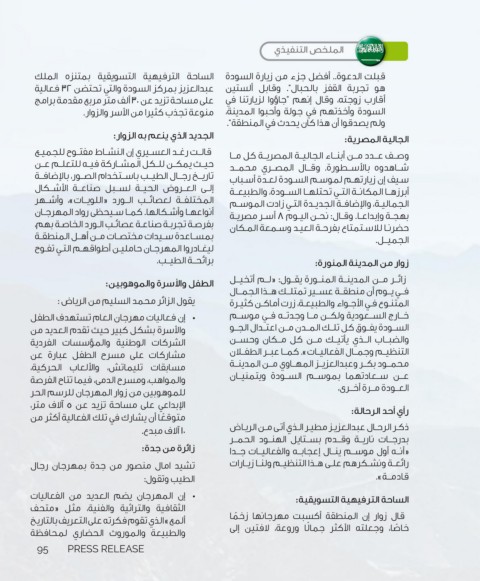 ‫	•إن فعاليات مهرجان العام تستهدف الطفل‬                    ‫الســودة يفــوق كل تلــك المــدن مــن اعتــدال الجــو‬