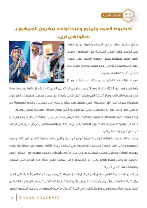 ‫ورحب فؤاد بجمهوره قائل ًا‪“ :‬شرفتونا‪ ،‬وسعيد بتواجدي في ليلة من ليالي موسم الرياض المبهر‪ ،‬وإن شاء‬