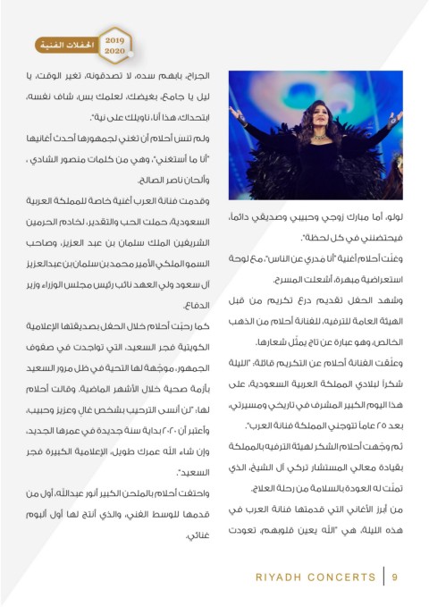 ‫وألحان ناصر الصالح‪.‬‬    ‫الهيئة العامة للترفيه‪ ،‬للفنانة أحلام من الذهب‬