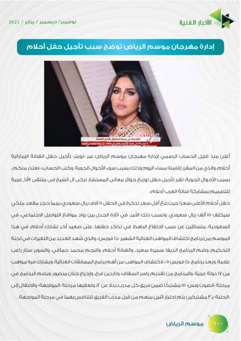 إدارة مهرجان موسم الرياض توضح سبب تأجيل حفل أحلام