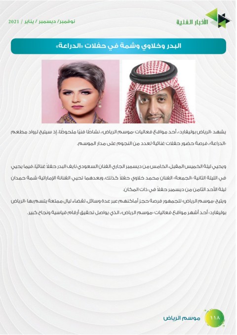 ويحيي ليلة الخميس المقبل ،الخامس من ديسمبر الجاري الفنان السعودي نايف البدر حفل ًا غنائ ًيا ،فيما يحيي