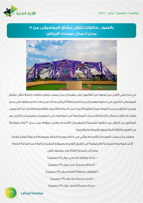 ‫الموسيقى الراغبين في حضور المهرجان من خارج منطقة الرياض‪ ،‬وذلك عبر رحلات تم جدولتها على مدى‬