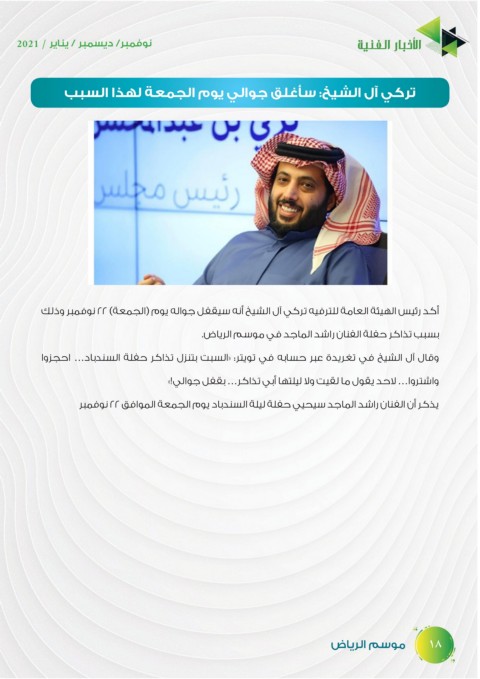 ‫أكد رئيس الهيئة العامة للترفيه تركي آل الشيخ أنه سيقفل جواله يوم (الجمعة) ‪ ٢٢‬نوفمبر وذلك‬