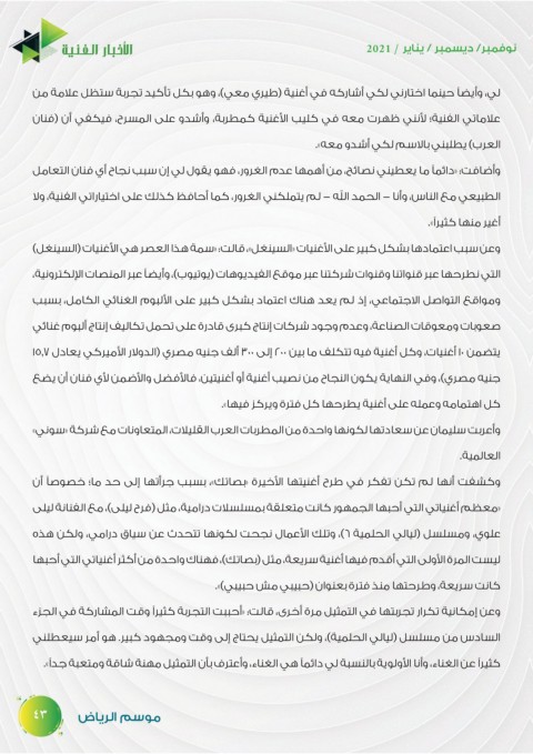 وعن سبب اعتمادها بشكل كبير على الأغنيات «السينغل» ،قالت« :سمة هذا العصر هي الأغنيات (السينغل)