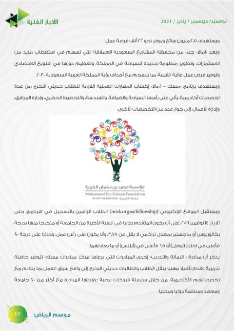 وتوفير فرص عمل عالية القيمة ،بما ينسجم مع أهداف رؤية المملكة العربية السعودية .٢٠3٠