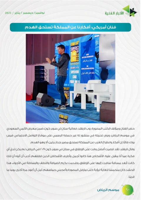 حضر الفنان ومؤلف الكتب المصورة ،روب لايفلد ،فعالية ستان لي سوبر كون ،ضمن معرض الأنمي السعودي