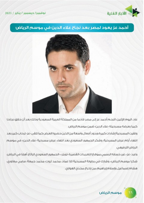 ‫أحمد عز يعود لمصر بعد نجاح علاء الدين في موسم الرياض‬