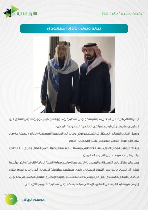 ووصل الثنائى الإيطالى المعتزل فرانشيسكو توتي وبيرلو إلى العاصمة السعودية «الرياض» للمشاركة فى