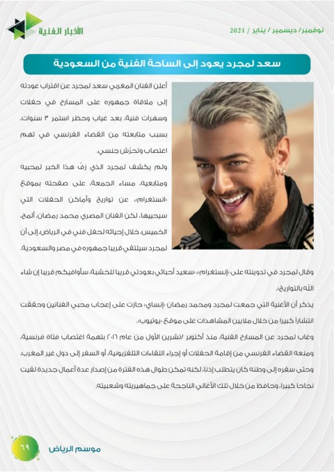 وقال لمجرد في تدوينته على «إنستغرام»« :سعيد أحبائي بعودتي قريبا للخشبة ،سأوافيكم قريبا إن شاء