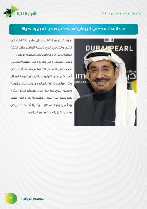 عبدالله السدحان :الرياض أصبحت مصدر للفرح والحياة
