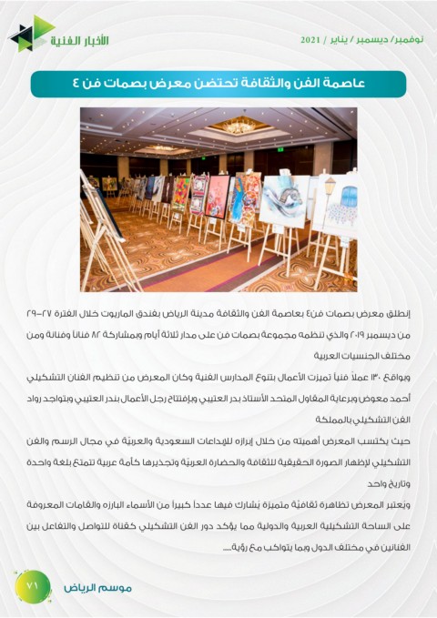 إنطلق معرض بصمات فن 4بعاصمة الفن والثقافة مدينة الرياض بفندق الماريوت خلال الفترة ٢٩-٢7