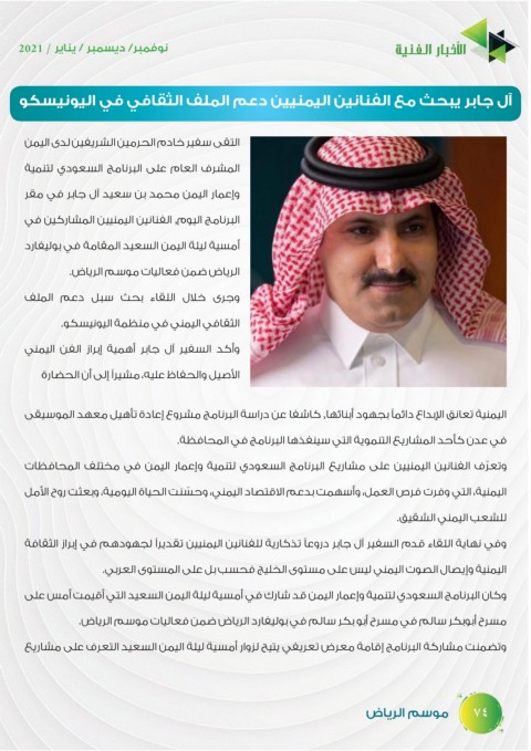 ‫وأكد السفير آل جابر أهمية إبراز الفن اليمني‬