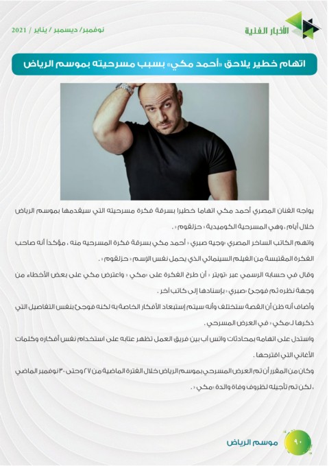 يواجه الفنان المصري أحمد مكي اتهاما خطيرا بسرقة فكرة مسرحيته التي سيقدمها بموسم الرياض