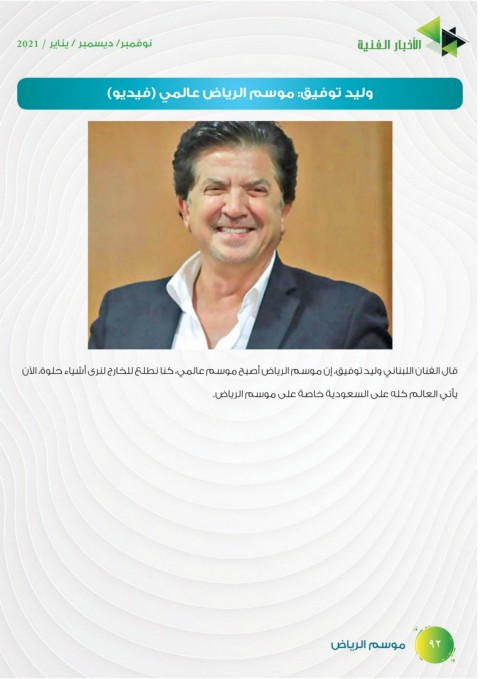 قال الفنان اللبناني وليد توفيق ،إن موسم الرياض أصبح موسم عالمي ،كنا نطلع للخارج لنرى أشياء حلوة ،الآن