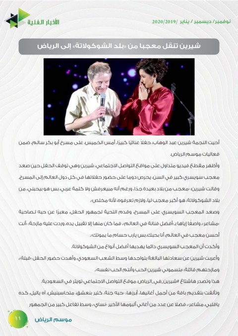 شيرين تنقل معجبا من «بلد الشوكولاتة» إلى الرياض