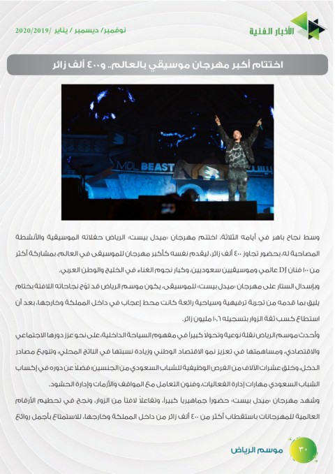 وبإسدال الستار على مهرجان «ميدل بيست» للموسيقى ،يكون موسم الرياض قد ت ّوج نجاحاته اللافتة بختام