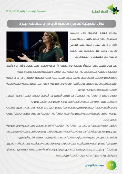 ‫موسم الرياض بالمملكة العربية السعودية‪ ،‬اعتذار الفنانة نوال الكويتية عن إحياء فقرتها الغنائية لظرف‬