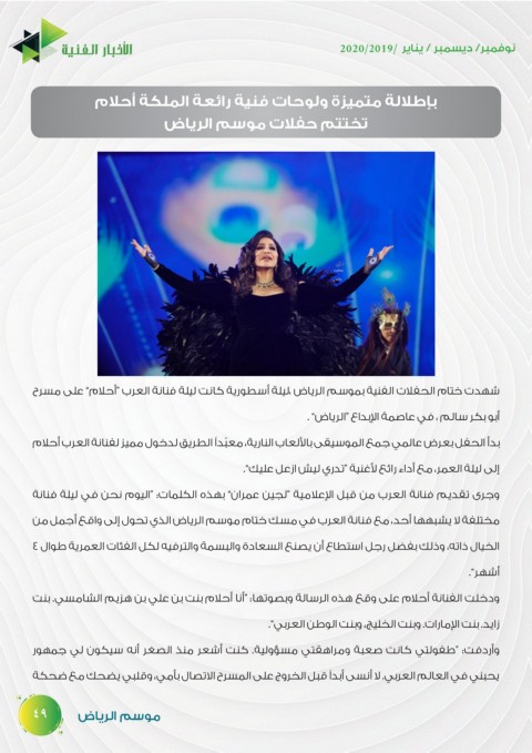 شهدت ختام الحفلات الفنية بموسم الرياض ،ليلة أسطورية كانت ليلة فنانة العرب “أحلام” على مسرح