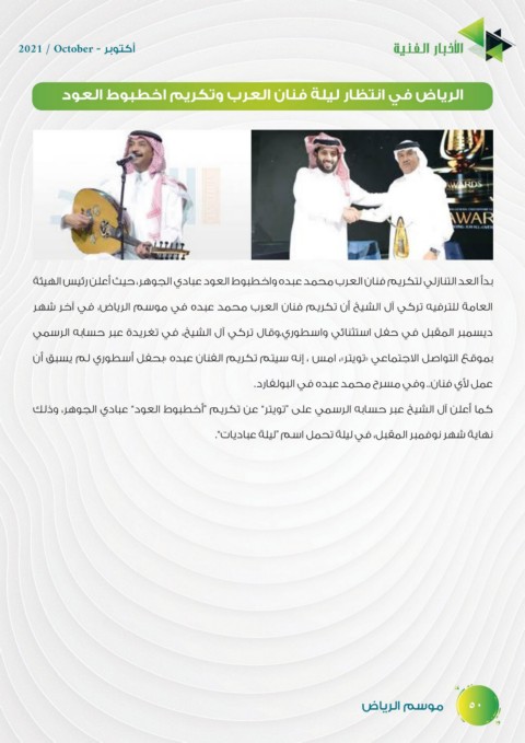 العامة للترفيه تركي آل الشيخ أن تكريم فنان العرب محمد عبده في موسم الرياض ،في آخر شهر