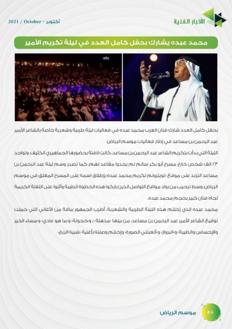 بحفل كامل العدد شارك فنان العرب محمد عبده في فعاليات ليلة طربية وشعرية خاصة بالشاعر الأمير
