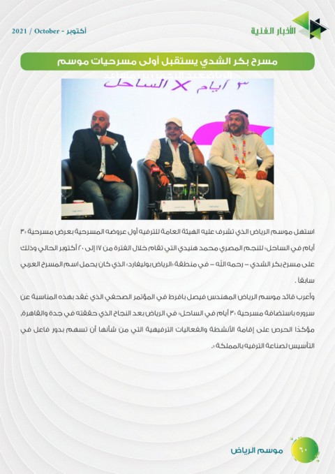 سروره باستضافة مسرحية « 3أيام في الساحل» في الرياض بعد النجاح الذي حققته في جدة والقاهرة,