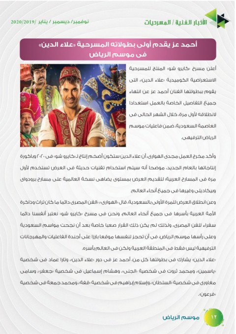 وأكد مخرج العمل مجدى الهوارى ،أن علاء الدين ستكون أضخم إنتاج لـ«كايرو شو» فى 2020وباكورة