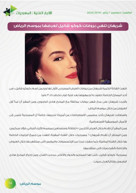 ‫انتهت الفنانة الكبيرة شريهان من بروفات العرض المسرحى الأول لها ويحمل اسم «كوكو شانيل»‪ ،‬فى‬